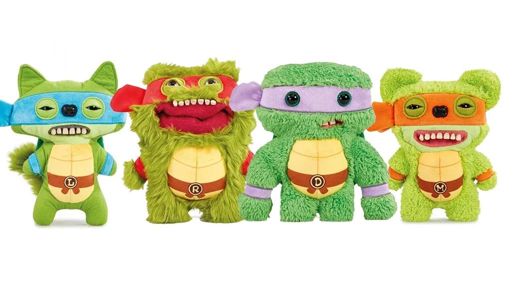Želví nindžové dostali nový vzhled. Tyto vtipné, roztomilé plyšové figurky zobrazují všechny čtyři želví bratry jako zelené, liščí dívky s lidskými zuby, mírně otevřenýma očima, dírou na BUTT-on, maskami a jejich želvími pancíři, na nichž jsou vytištěny doplňky odpovídající jejich podpisům.