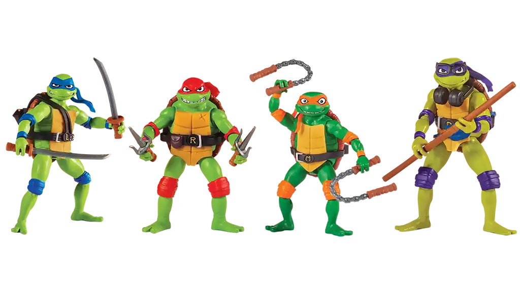 Tato sbírka akčních figurek představuje hrdiny a padouchy z nadcházejícího filmu Setha Rogena Teenage Mutant Ninja Turtles: Mutant Mayhem. Figurky, přepracované ve stylu animovaného filmu, jsou plně pohyblivé, měří 4-5 palců a jsou dodávány s řadou zbraní a doplňků.