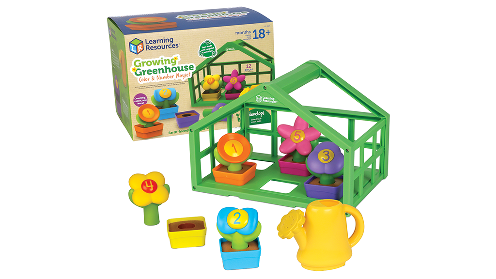 Děti si mohou procvičovat dovednosti v barvách a počítání, zatímco třídí, párují a počítají okvětní lístky a identifikují očíslované pestíky. Vše se vejde do skleníku, takže si s tím mohou hrát i na cestách. Obsahuje funkční konvičku a návod k aktivitám.