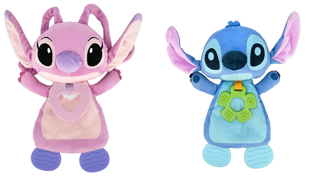 Seznamte děti se Stitchem a Angelem pomocí hraček z této kolekce. Nabídka zahrnuje senzorickou deku Stitch a senzorickou deku Angel, obě s šustivou texturou a BPA-free kousátkem; 15palcovou plyšovou Angel, která samostatně stojí.