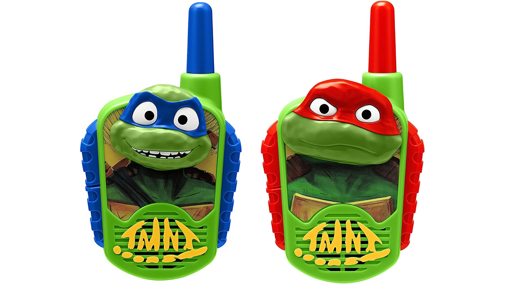Vysílačky Želvy Ninja jsou připraveny na misi! Posílejte zprávy bez statického šumu stisknutím tlačítka, s ovládáním přátelským pro děti. Tyto vysílačky mají dosah až 150 metrů.