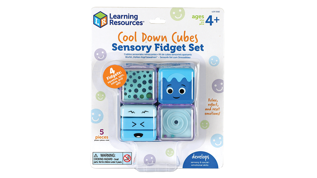 Tato čtyřdílná uklidňující senzorická kostka nabízí různé fidget aktivity, které pomáhají dětem zpracovávat jejich emoce. Děti mohou stlačovat pomalu se vracející pěnu, otáčet spinnerem, řešit bludiště a prosévat padající korálky. Kostky lze uložit do podnosu, když hra skončí.