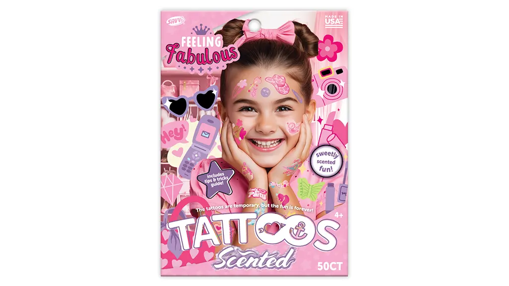 Tento balíček 50 kusů dočasných tetování s vůní cukrové vaty, šetrných k pokožce, lze použít na kůži, oblečení, lahvích s vodou a na mnoha dalších površích, aby si děti mohly užít zábavu. Balíček obsahuje také průvodce "Tipy a triky" pro maximální zábavu.