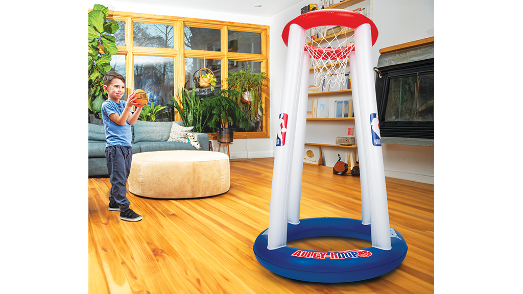 NBA Nafukovací Alley-Hoop je dokonalý basketbalový koš pro hru uvnitř i venku. Díky 360stupňové hratelnosti mohou děti střílet z jakéhokoli úhlu! Má základnu, kterou lze naplnit vodou, takže když ji děti převrhnou, odrazí se zpět. Nastupující basketbalové hvězdy mohou trénovat smečování nebo alley-oop na tomto 4 stopy vysokém nafukovacím koši.