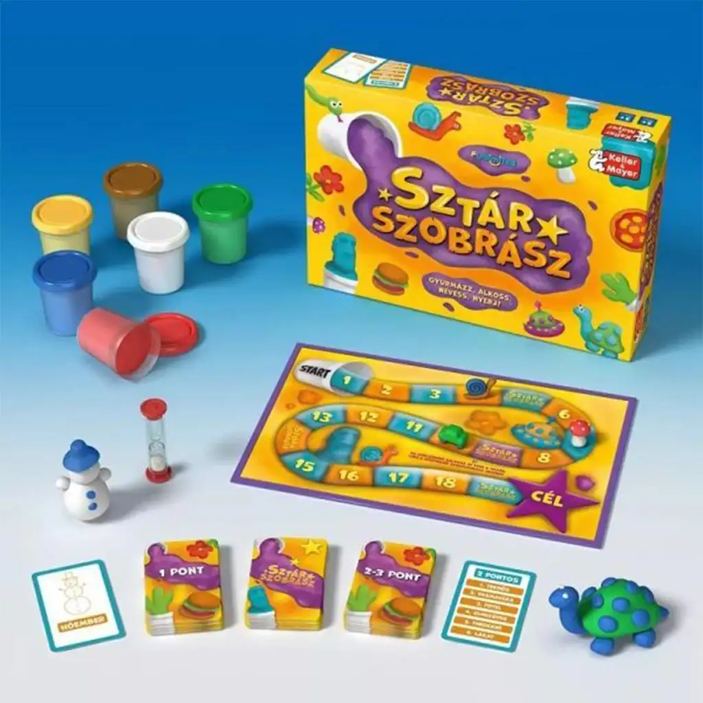 Ve hře Sztárszobrász se může celá rodina zapojit do opravdu kreativní a zábavné výzvy s modelínou! Během hry musíte z modelíny vytvarovat různé předměty, osoby nebo zvířata, které si vytáhnete na základě karet. Můžete hrát v týmech nebo se utkat jednotlivě, zatímco závodíte s časem. Je ideální i pro malé děti, protože úkoly jsou srozumitelné i bez znalosti čtení, ale pro starší a dospělé čekají náročnější výzvy. Hra okouzlí pomocí barevných modelín a zaručuje spoustu smíchu a kreativních momentů. Rozmanitost úkolových karet zajišťuje, že se vždy setkáte s novými výzvami, takže nikdy nebude nudná. Ať už hledáte hru na skvělou párty, nebo chcete oživit rodinné odpoledne, Sztárszobrász bude zaručeně skvělou volbou.
