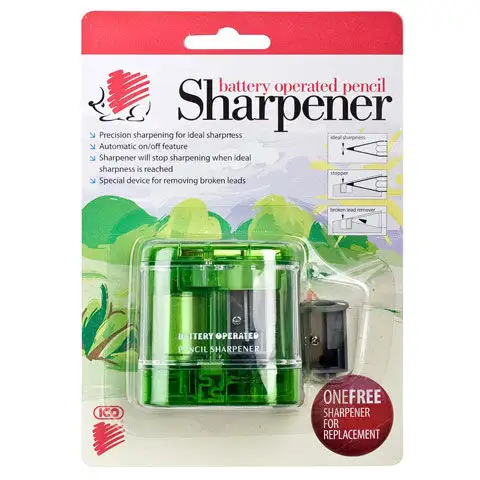 K udržení vašich tužek v dobrém stavu může být velkou pomocí elektrická ořezávátka, která výrazně zjednodušuje a zkracuje proces ořezávání. Toto ořezávátko je díky své praktické velikosti vhodné i pro použití během hodiny. Vejde se do kapsy nebo do většího penálu. K jeho použití budete potřebovat pouze 2 tužkové baterie. Je vhodné pro ořezávání grafitových i barevných tužek.