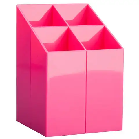 Pro ty, kteří preferují hranatější tvary, může na jejich stole esteticky vypadat takovýto design psací potřeby. Udržuj své psací potřeby v přísném pořádku! Měj tužky, pera a další kancelářské nástroje v samostatných přihrádkách. Čím více nástrojů přihrádka obsahuje, tím stabilněji bude stát na tvém stole. Používej doma nebo v kanceláři, pokud máš rád růžovou barvu a chceš ji dodržet i u ostatních nástrojů.