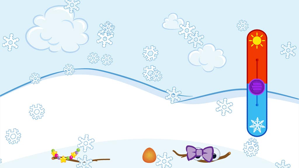 Snow Monster Maker je kouzelná online hra, která snadno vysvětluje změny zimního počasí malým dětem. Děti mohou posouvat teplotu nahoru a dolů, aby viděly, jak se teplý jarní déšť mění v zasněžený zimní zázrak — a pak si mohou postavit vlastní Sněhovou příšeru, ozdobit ji doplňky a sledovat, jak se rozpouští v teple! Mohou experimentovat s různými teplotami a oblečením a objevovat, takže tato praktická STEM hra je dokonalou sváteční aktivitou.