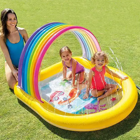 Ve této skvělé bazénu mohou současně plavat až dva lidé a děti budou jistě bavit jeho stříkající funkce, stejně jako jeho atraktivní vzhled. Barevný bazén je vybaven nafukovacím duhovým obloukem, který poskytuje stín pro hraní. Bazén lze rychle nafouknout a jakmile je naplněn vodou, může začít zábava! Stříkající bazén jistě poskytne osvěžení v horku!