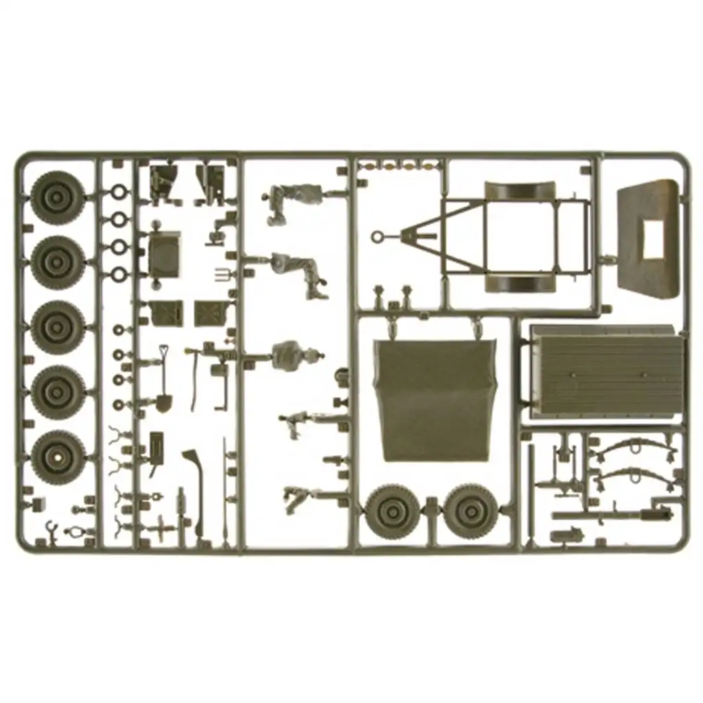 Tento model Italeri v měřítku 1/35 věrně zobrazuje autentický vzhled Willys MB Jeepu a přívěsu s vynikajícími detaily. Jemně zpracované karosářské prvky, přesný interiér a realistický podvozek vytvářejí věrný model. Sada obsahuje tři figurky, které dále zvyšují realističnost diorám. Přiložené obtisky umožňují výběr ze čtyř různých možností nátěru a označení.