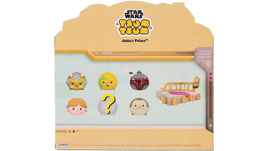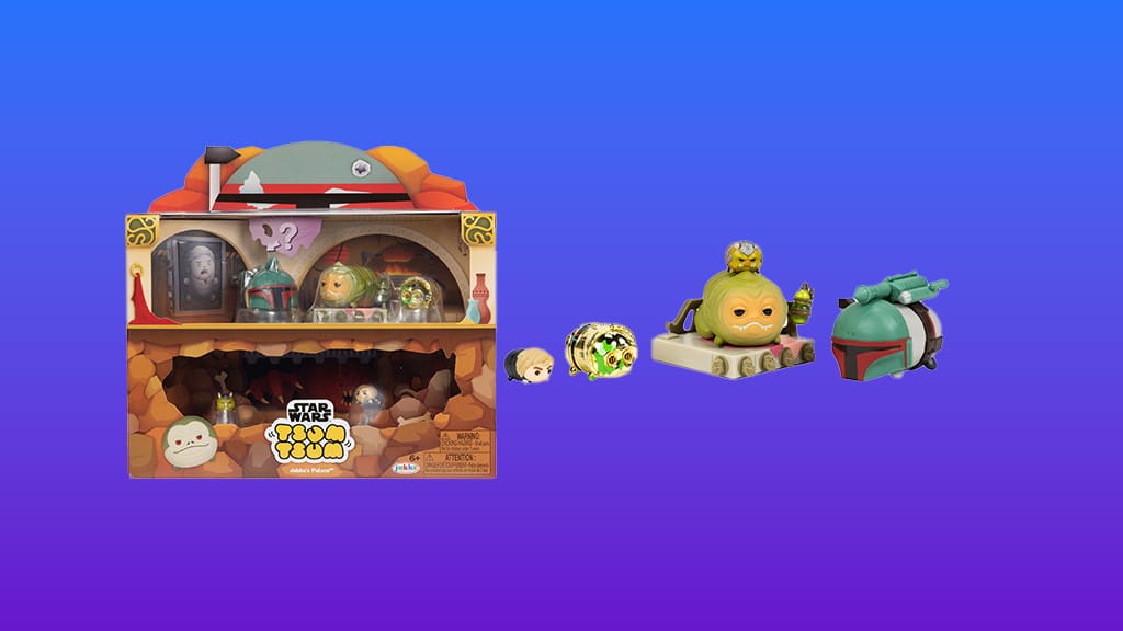 Sada JAKKS Pacific Star Wars Tsum Tsum Jabbas Palace Deluxe je navržena pro mladé, intergalaktické děti, které milují tuto franšízu. Tyto malé figurky jsou inspirovány filmem Star Wars: Návrat Jediho, včetně klíčového okamžiku, kdy Luke Skywalker bojuje s Jabbou Huttem. Jsou malé, ale silné, a mezi figurkami v sadě najdete velkého Bobu Fetta (3,8 cm), velkého Jabbu Hutta, středního C-3PO (2,5 cm), malého Gartogga (1,3 cm), malého Lukea Skywalkera a jednu překvapivou postavu. Sada také obsahuje velký doplněk, trůn Jabby Hutta. Krabice na hračky navíc slouží jako sběratelská vitrína.
