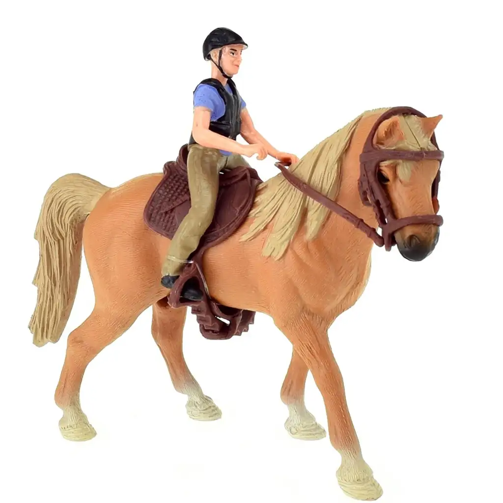 Kůň i jezdec jsou vyrobeni z vysoce kvalitního plastu s realistickými detaily, jako jsou uzda, podsedlová deka nebo jezdecký oděv. Doplňky – například krmítko, seno, lopata, vědro a plot do ohrady – umožňují dětem, aby se o svého čtyřnohého miláčka mohly plně postarat. Sada rozvíjí jemnou motoriku, kreativitu a pečovatelský přístup, zatímco se děti ponoří do světa farmářského života.