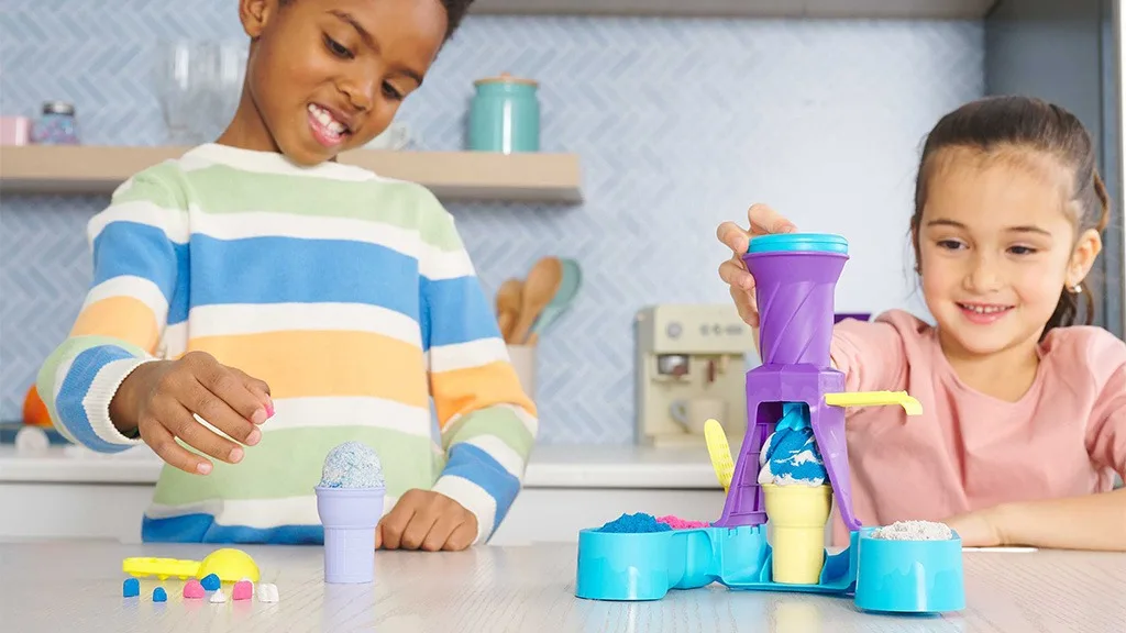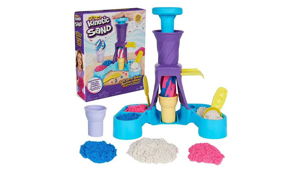 Hraní s pískem nikdy nebylo tak sladké. Sada hraček Spin Master Kinetic Sand Soft Serve Station umožní dětem uvolnit jejich vnitřního prodavače zmrzliny a podávat pískové pochoutky bez nutnosti návštěvy pláže.Sada her navržená pro děti ve věku 5 let a starší je plná možností, jak podle individuálního vkusu vytvářet lahodné zmrzlinové pochoutky znovu a znovu.