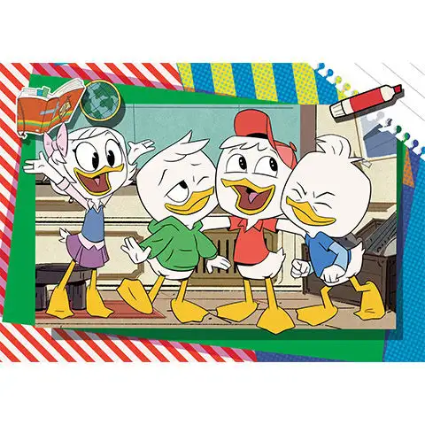 Dobrodružství milionáře strýce Skrblíka a jeho tří nezbedných synovců sledují všechny děti s napětím na televizních obrazovkách, ale nyní si mohou připomenout veselé a vzrušující dobrodružství při skládání skvělého puzzle. V této krabici najdete tři různé puzzle, každé o čtyřiceti osmi dílcích, na kterých se usmívají postavičky z pohádek. Dílky puzzle Clementoni lze snadno složit a dokonale se hodí, díky bezkompromisním, vynikajícím tiskovým postupům je hotový obrázek dechberoucí ostrosti a plný živých barev.