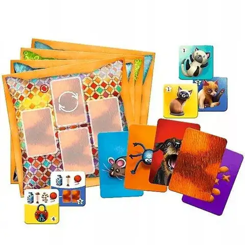 Cílem hráčů v této vzrušující hře je přijmout co nejvíce koček, což však není tak jednoduchý úkol, jak se na první pohled zdá. Ve hře Kočky musí hráči na svou desku získat co nejvíce koček, k čemuž mohou použít návnady a hračky. Musí však být opatrní, protože už štěkání psů je dokáže vystrašit! Kdo dokáže jako první přilákat k sobě více koček?