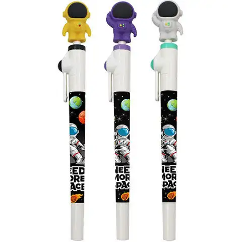 Většina malých kluků se velmi zajímá o astronauty a kosmické lodě, takže je naprosto jisté, že toto pero bude velkým hitem, protože na konci má figuru roztomilého malého astronauta, která ho činí jedinečným. Vyberte si jednu ze tří různých barev per, které jistě zaujmou malé kluky a s radostí je vloží do svého penálu nebo do šuplíku psacího stolu.