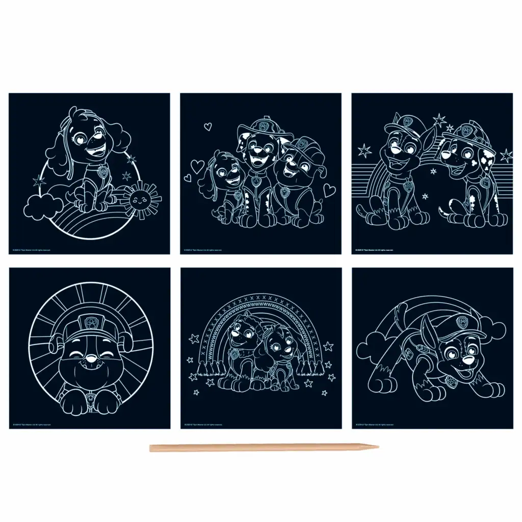 Kreativní sada na výrobu škrabacích obrázků Tlapková patrola je perfektní volbou pro všechny malé děti, které rády tvoří, vybarvují a samozřejmě zbožňují dobrodružství odvážných pejsků! Tato speciální kreativní sada obsahuje 6 předkreslených obrázků s černým povrchem, na kterých lze pomocí přiložené dřevěné tyčinky „škrábat“, aby se pod nimi objevily barevné a veselé vzory.