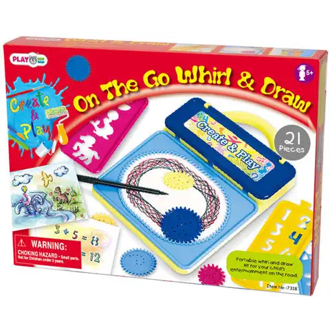 V tomto setu najdete vše potřebné k vytvoření úžasně jedinečných a speciálních kreseb. Položte pod šablonu bílý kreslící papír a vyberte si malé ozubené kolečko, poté začněte tužkou kroužit po papíře tak, aby se ozubené kolečko neustále spojovalo s rámem. Uvidíte, jak vzniká zvláštní dílo. Navíc celé dílo můžete ještě více oživit, když občas změníte barvu. V sadě najdete šablony s motivy zvířat, vozidel a čísel, takže můžete vytvořit opravdu kouzelná díla.