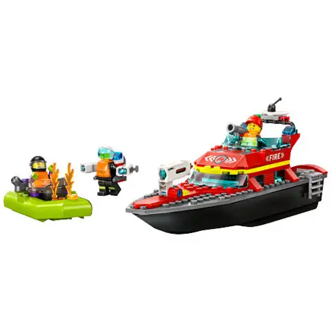 "Au! BUM! Motorový člun se vznítil a kapitán skočil z paluby! Svolávej velký výkonný hasičský člun LEGO® City! Prořízněte se vlnami a pomozte kapitánovi na bezpečí! Poté vypusťte odvážný hasičský člun a hasičským zařízením na lodi uhasi ty plameny! Kdy bude další nouzová situace? V LEGO® City to záleží jen na tobě!