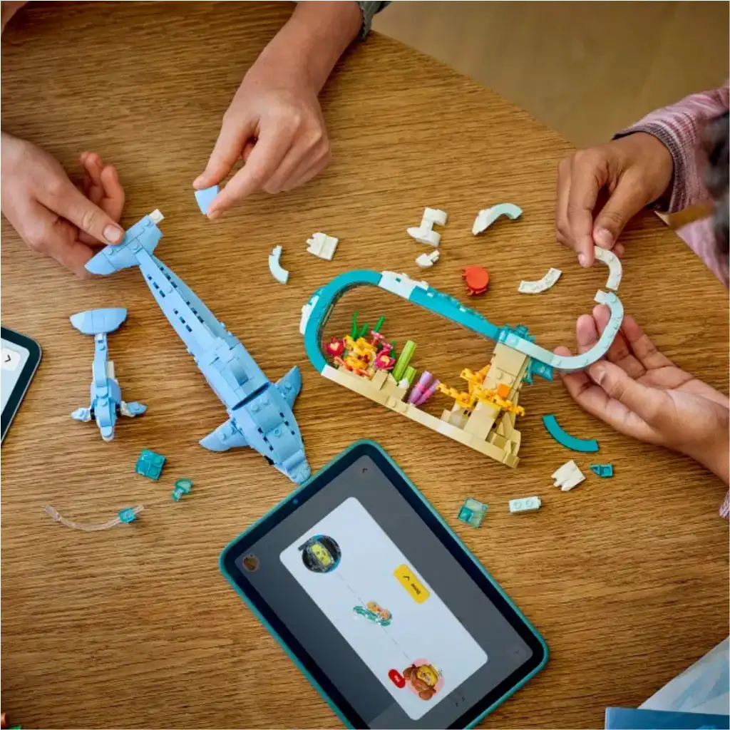 • NEKONČÍCÍ PŘÍBĚHY – Děti si užijí veselé příběhy se 3 krásnými zvířecími hračkami (nelze je stavět současně): s 2 delfíny surfujícími na vlně, s modelem mořského koníka nebo s hračkou kraba