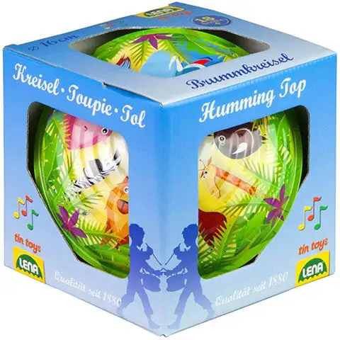 Bzučák je téměř v každé dětské hračce, protože je jednoduchý na použití a doslova způsobuje závratný pohled svým otáčením. Musíte pumpovat rukojeť na vrcholu šneka, aby se hračka pohnula, nebo lépe řečeno, aby se roztočila. Když se šnek otáčí dostatečnou rychlostí, můžeme ruku pustit a hračku poslat na cestu, která, pokud jsme vše udělali správně, bude dlouho točit. Tento skvělý kovový bzučák obsahuje nápadné vzory džungle s nejznámějšími zvířaty divočiny.