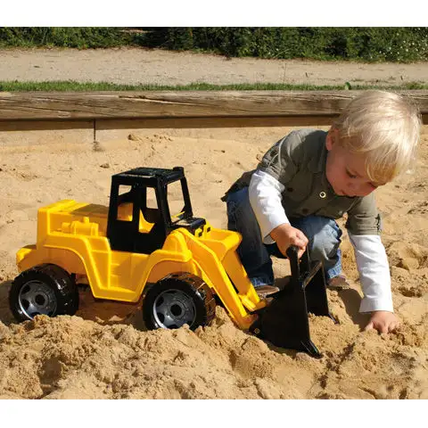 Na písečné pláži nebo na pískovišti na hřišti můžete mít díky tomuto klasickému žlutému a černému čelnímu nakladači ten nejúžasnější pracovní stroj. Tento skvělý zemní stroj je ideální pro to, abyste se posadili na část za kabinou řidiče, protože silné ocelové nápravy snadno unesou a odtud můžete pohodlně ovládat lžíci čelního nakladače pomocí masivní rukojeti. Certifikát LENA Spiel Gut slouží jako záruka vynikající kvality materiálů a odolného provedení, stejně jako z hlediska herního zážitku, který je pro děti nejdůležitější.
