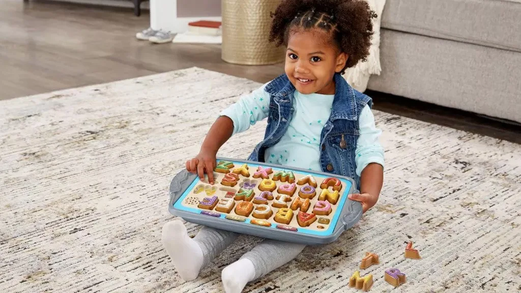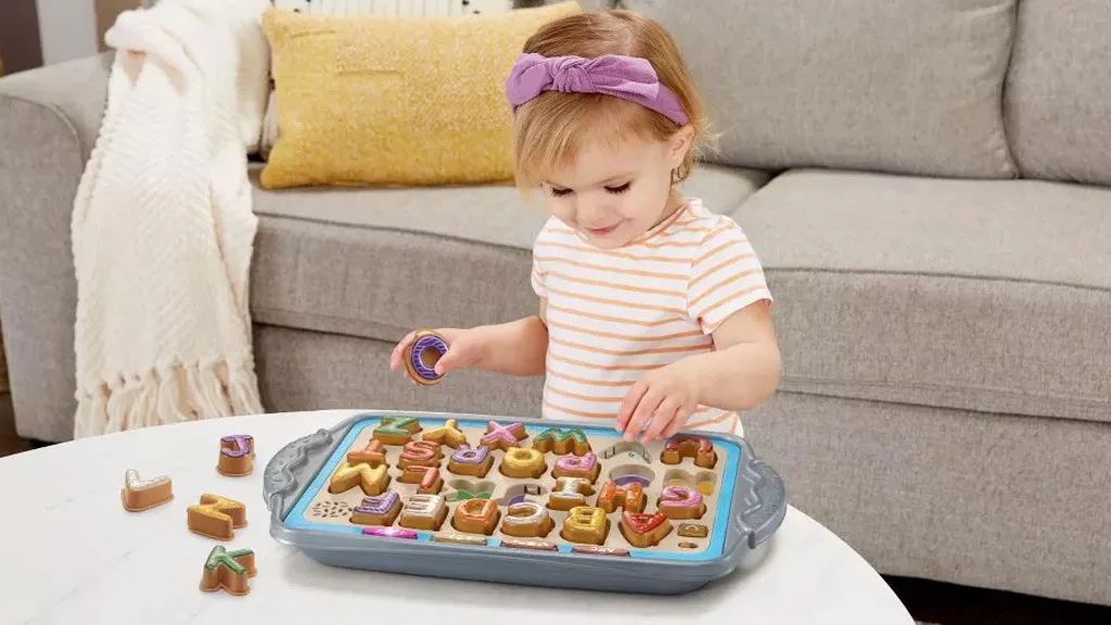 I když může být podnos příliš velký na to, aby se nosil do restaurace nebo čekárny, může snadno sloužit jako hra pro cestování autem. Jednou vložené, jsou cukroví dostatečně stabilní a schopné přežít i vážné otřesy bez toho, aby vypadly. Nicméně neexistuje způsob, jak uchovávat jednotlivé kousky, takže se ujisti, že máš určený sáček nebo krabici pro cukroví, když nejsou na podnosu.Ačkoliv je hra inzerována pro děti od 2 let a starší, i mladší děti mohou těžit z hraní s Match and Learn Cookies. Možná ještě nerozumí tomu, co nahrávky říkají nebo znamenají, ale mohou si procvičovat umisťování předmětů do správných výřezů, zabývat se hudbou a rozpoznávat odpovídající barvy. Když děti umisťují sušenky na tácek, mohou používat své rostoucí dovednosti jemné motoriky k stisknutí sušenek a poslechu následujících zvuků.Pokud ti slova "hudba" a "cookie" připadají příliš hlučné, můžeš si vybrat ze tří úrovní hlasitosti: tichá, hlasitá a ještě hlasitější. Děti mohou ticho skládat písmena, tvary a barvy nebo vymýšlet vlastní hry a bez pomoci zvuku rozluštit každé písmeno. Vyzkoušej sebe a své dítě tím, že je požádáš, aby na tácku napsali různá slova bez audio návodu!Pokud vaše dítě nerado zkouší nové věci, možná ho tyto falešné banánové, jablkové a kokosové sušenky přesvědčí! Pokud nejsou příliš nadšeni z učení se novým věcem, je to také skvělý způsob, jak je naučit různé věci, zatímco se přitom dobře baví.Malí cukráři mohou předstírat, že připravují a pečou 26 vypadajících chutných písmenkových sušenek. Stiskni barevnou sušenku na tácku, abys slyšel názvy písmen, zvuky písmen, barvy a chutě. Teď jsi šéfkuchař! Sejmi sušenky z tácky a podávej sladké pochoutky přátelům a rodině. Dávej pozor, abys slyšel, kterou sušenku potřebuješ upéct...