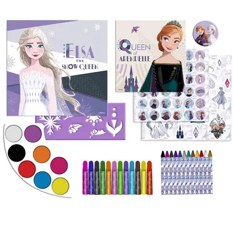 Kreativní sada Ledové království je perfektní volbou pro všechny malé fanoušky! Sada obsahuje omalovánky a vodové barvy, se kterými se děti mohou vydat do říše ledu a svobodně tvořit. Pomocí štětce a fixů mohou své výtvory učinit ještě kreativnějšími. Používání šablon navíc pomáhá malým dětem snadněji nakreslit své oblíbené motivy z Ledového království. Součástí sady jsou také samolepky a další kreativní doplňky, díky kterým budou jejich práce ještě pestřejší a zábavnější. Kreativní sada Ledové království podněcuje dětskou fantazii a dává možnost naplno rozvinout jejich kreativitu a ponořit se do kouzelného světa pohádky.