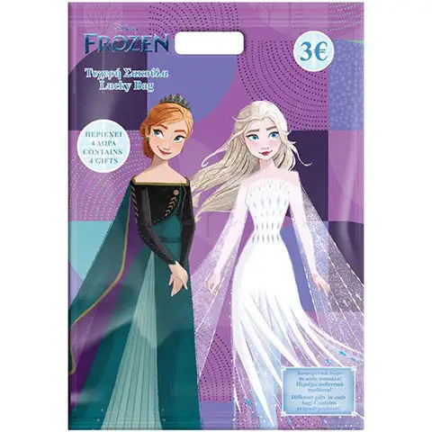Pokud hledáte opravdový překvapení balíček, nikoli jen takový, ve kterém najdete jen několik malých figurek, pak je to skvělá volba pro malé dívky. Sáček je zdoben dvěma oblíbenými princeznami z populárního animovaného filmu Ledové království, Annou a Elsou, a obsahuje čtyři dárky pro děti. V sáčku o rozměrech dvacet devět krát čtyřicet centimetrů na děti čekají opravdová překvapení, jako je frisbee, flétna nebo různé zahradní a plážové hračky. Takový sáček zaručeně přinese překvapení, i tomu, kdo jej dává, protože jeho obsah je pro všechny zcela neznámý.