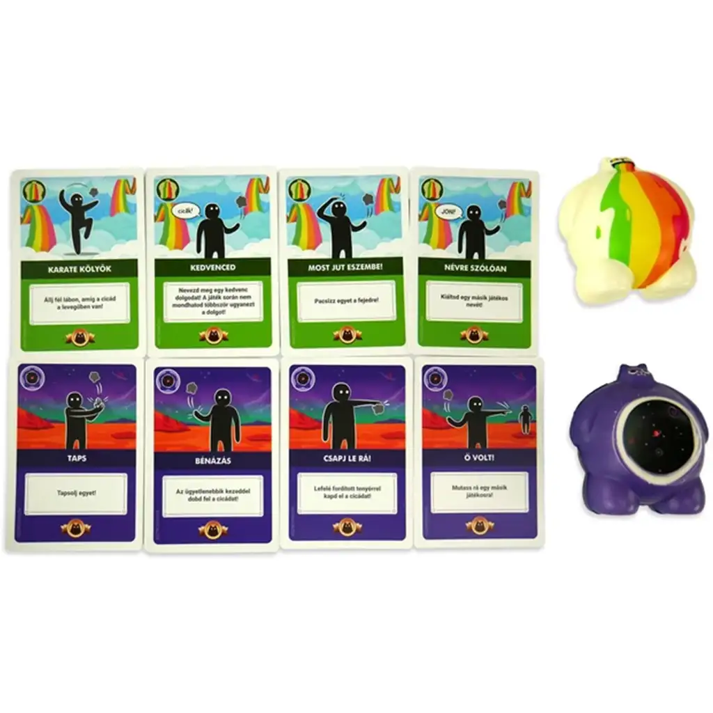 Cílem hry je jako první bezchybně splnit alespoň pět triků při jediném vyhození kočky. Pokud se ti to podaří, vítězství je tvoje – pokud ne, čekají tě další kola a ještě více smíchu. Když se spleteš, můžeš odhodit karty, ale to ti zpomaluje postup. Létající kočičky tak vyžadují dovednost, rychlou reakci i dávku strategie – a přitom se nemůžeš nesmát, když ostatní ztroskotají.