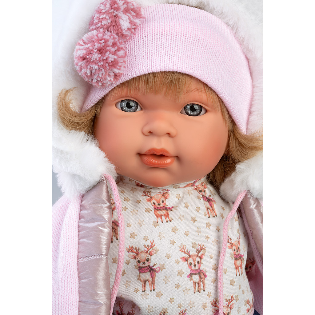 Llorens: Carla, 42 cm pláčící panenka v modré sukni, je opravdu okouzlující a věrná hračka, která přináší radostné chvíle do každodenního života tvého dítěte. Panenka s jemně propracovanou tváří, zářivýma očima a měkkým dotekem si okamžitě získá srdce nejmenších. Roztomilý top s potiskem, módní modrá sukně a teplé růžové doplňky vytvářejí harmonický a stylový vzhled. Pláčící funkce a dudlík činí hračku ještě realističtější, takže se tvé dítě může o panenku starat, uklidňovat ji a mazlit se se svým novým oblíbencem.