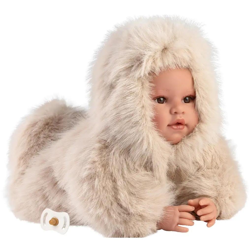 Leo je oblečený v měkkém, krémově sametovém kabátku, který nejenže vyzařuje teplo a pohodlí, ale také mu dodává stylový vzhled. V kapuci s kožešinovým lemem je jeho roztomilý, jemně propracovaný obličej opravdu výrazný a jeho pohled téměř ožívá. Panenka pláče, pokud nedostane svůj dudlík – děti tak instinktivně začnou o ni pečovat, čímž rozvíjejí svou empatii a emocionální inteligenci.