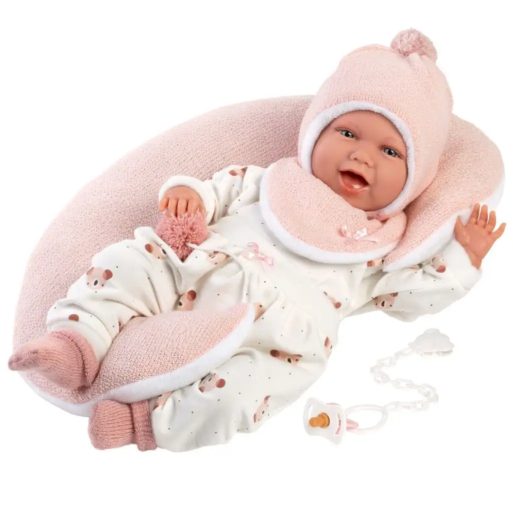 Llorens: Mimi 42cm panenka se zvukem, s polštářkem na bříšku v medvídkovém oblečení.