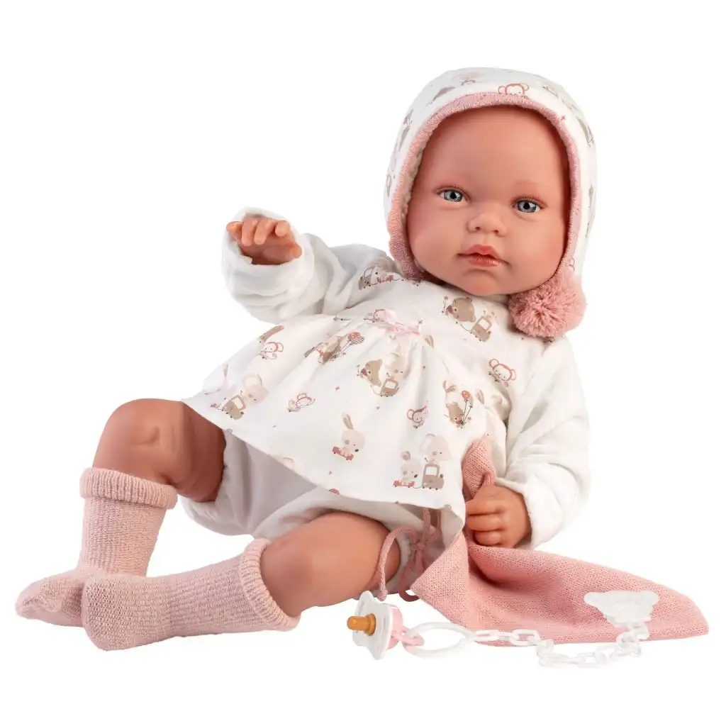 Llorens: Tala Llorana 44cm novorozenecká panenka se zvukem v kapucí oblečení.