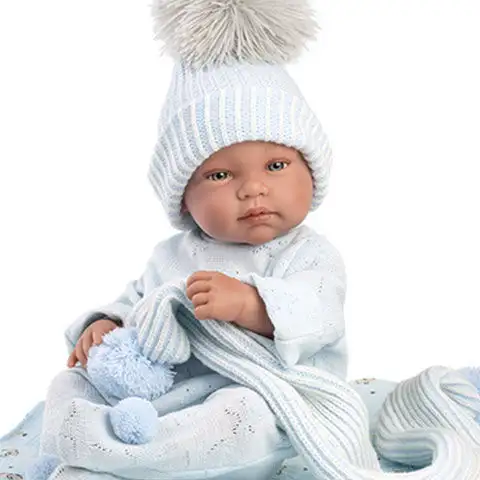 Llorens: Tino, 43cm novorozenecká chlapecká panenka s modrou dekou, dudlíkem a 3 různými oblečeními.Llorens: Tino, 43cm novorozenecká chlapecká panenka s modrou dekou, dudlíkem a 3 různými oblečeními.