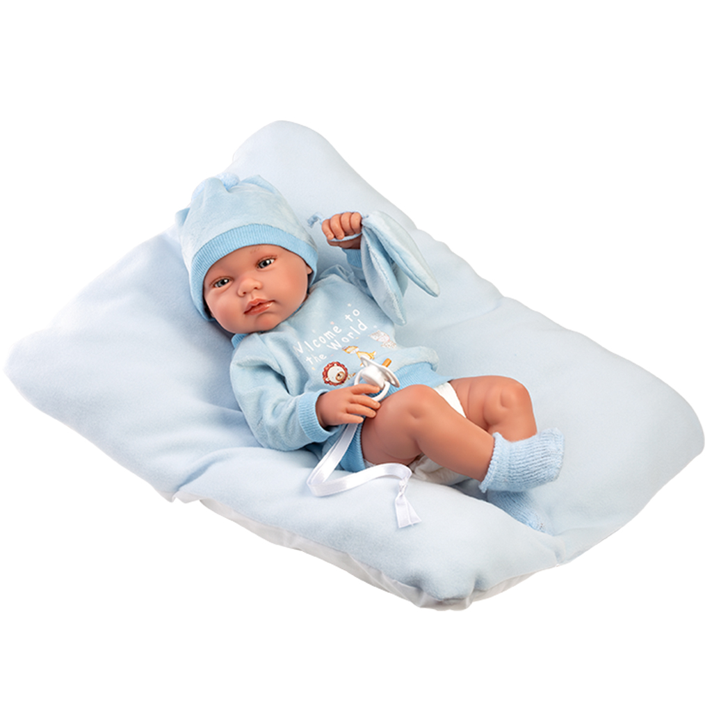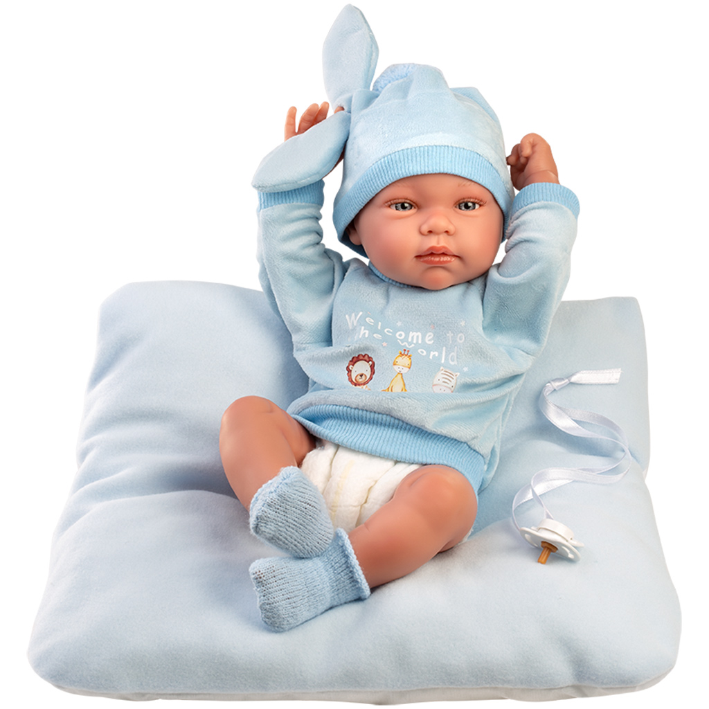 Llorens: Tino, 43cm novorozenecká panenka s polštářkem