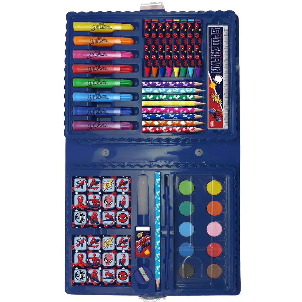 Uvolněte kreativitu svého dítěte s tímto superhrdinským, 42dílným kreativním setem s motivem Spider-Mana! Pokud je váš chlapec fanouškem Marvel vesmíru a rád kreslí, vybarvuje nebo maluje, tento set mu udělá skutečnou radost. V sadě najdete vše potřebné pro tvoření: barevné tužky, fixy, voskovky, vodové barvy, štětec, gumu, ořezávátko a dokonce i pravítko – vše ve stylovém pouzdře s motivem Spider-Mana!
