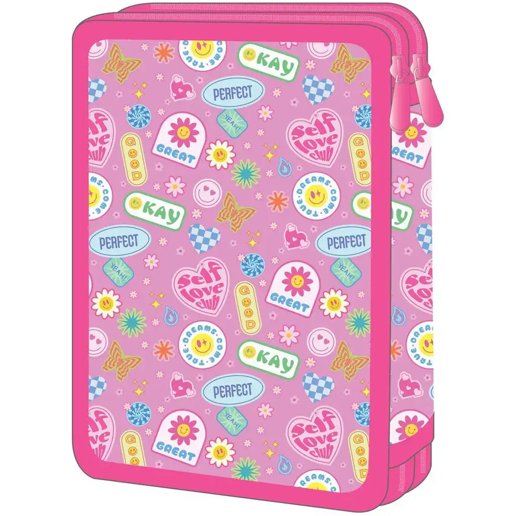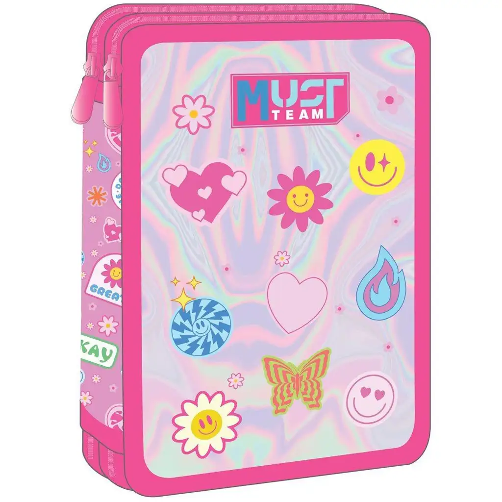 Dvoupatrový plně vybavený penál Must Team Good Vibes je ideální volbou, pokud chcete, aby vaše dítě bylo ve škole vždycky organizované a stylové. Holografický efekt na obalu a barevné ikony – usměvavé sluníčko, srdíčko, motýl, plamen a smajlík – zaručeně rozzáří každé ráno dobrou náladou. Design je moderní, svěží a plný pozitivní energie – přesně to, co je potřeba na školní den.