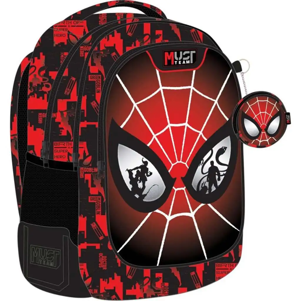 Tento zaoblený batoh se Spider-Manem se třemi přihrádkami je skutečnou trefou do černého pro každého malého fanouška superhrdinů! Přední stranu batohu zdobí ikonická Spider-Manova maska, v jejíchž reflexních očích se zrcadlí padouši (například Green Goblin a Dr. Octopus) – s tímto designem určitě vyniknete v davu ve škole. Červeno-černá barevná kombinace je dynamická a stylová, městské pozadí a superhrdinské motivy ještě více zvýrazňují jeho atraktivní vzhled.