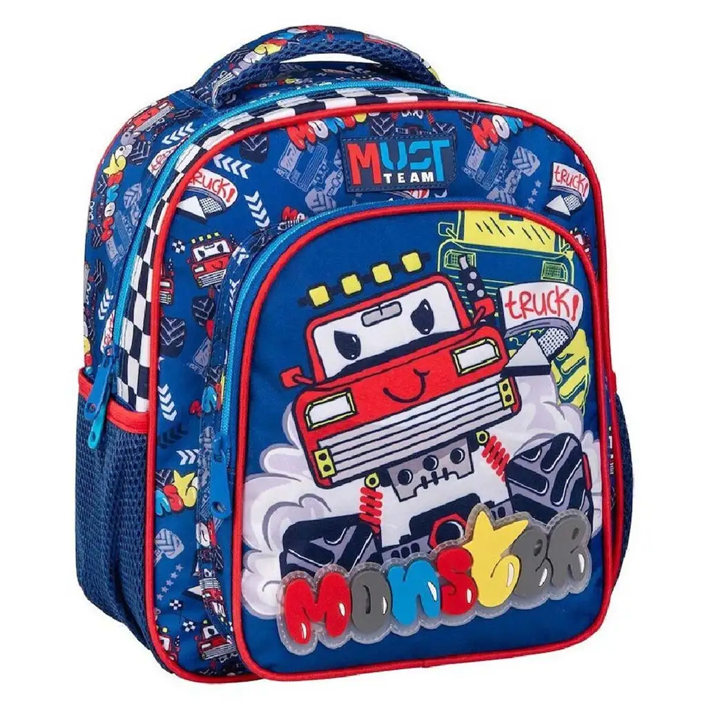 Luna: Oválný batoh do školky s motivem Must Team Monster Truck, zaoblený, se 2 přihrádkami, 27x10x31 cm