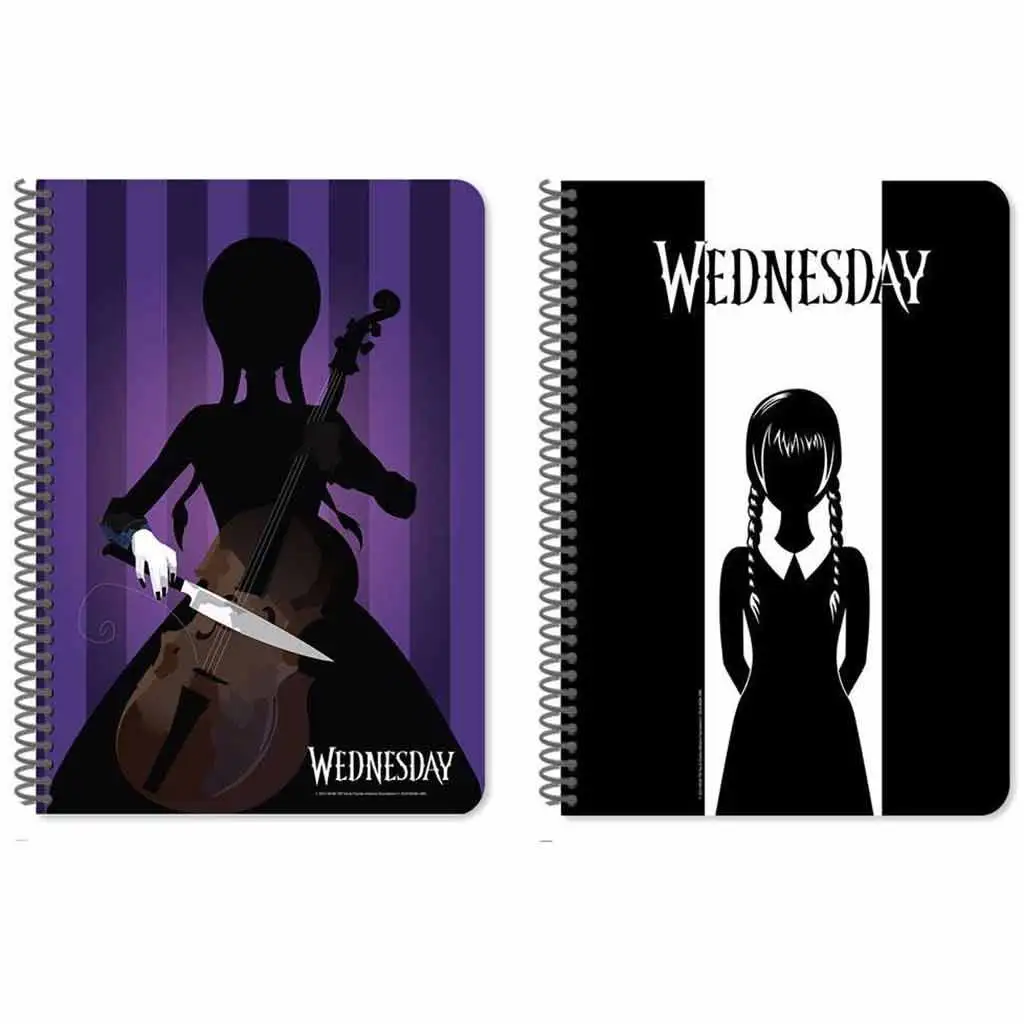 Očarujte si poznámky s tímto linkovaným spirálovým sešitem Luna Wednesday! Sešit formátu A4 s 60 stranami je k dispozici ve dvou speciálních designech, které evokují svět populární postavy Wednesday Addams. Na jednom obalu je Wednesday vidět při hře na housle, kde místo smyčce drží nůž, a na druhém obalu se objevuje její dobře známá silueta s copánky. Oba designy vyzařují temnou a mystickou atmosféru, což je perfektní volba pro každého fanouška Addamsovy rodiny.
