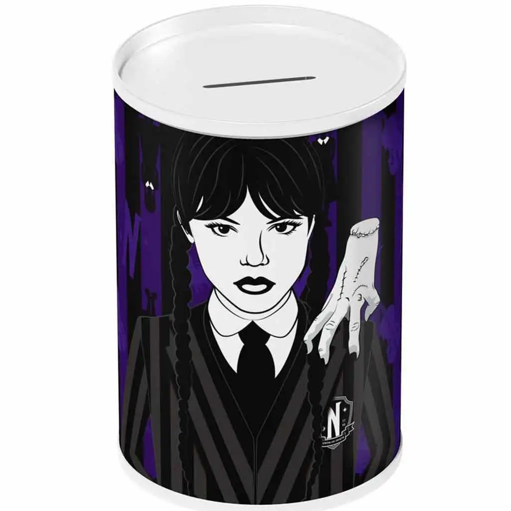 Poznejte děsivě vzrušující svět úspor s kovovou válcovou pokladničkou Luna Wednesday! Tato tmavá a stylová pokladnička je ideální volbou pro všechny fanoušky Wednesday Addams, kteří se chtějí naučit základy spoření. Ponurý, ale okouzlující vzhled postavy Wednesday zaručeně upoutá pozornost dětí a motivuje je k šetření peněz.