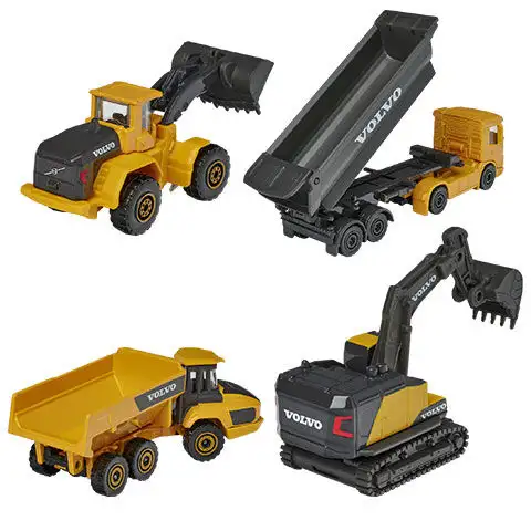 Dětské autíčkové parkoviště se nyní může najednou rozrůst o čtyři skvělé pracovní stroje Volvo. Volvo je jedním z nejoblíbenějších výrobců pracovních strojů, mezi kterými lze najít vše od nejmohutnějších pracovních strojů až po menší vozidla, navíc každý z nich je spolehlivý a má vynikající kvalitu. Tato sada obsahuje bagr Volvo EC950F, nakladač Volvo L350H, nákladní auto Volvo FMX a článkový sklápěč Volvo A60H, které jsou detailně zpracované, mají barvy odpovídající skutečným vozidlům, a hraní si s nimi je o to lepší díky volně se otáčejícím kolům a pohyblivým částem.