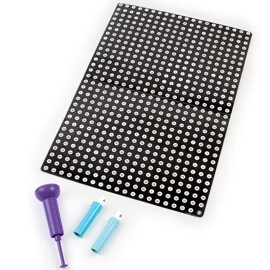 Technika tečkování je velmi uspokojující a relaxační – je jednoduchá a zároveň efektní, a proto ideální pro děti, které mají rády vizuální tvoření a precizní práci. Sada obsahuje vše, co děti k tvoření potřebují: plakát, razítko a dva inkoustové polštářky, s jejichž pomocí jasnými a třpytivými barvami vyplní předem určené tečky.