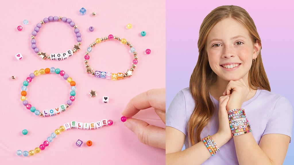 Tato sada na výrobu náramků obsahuje více než 1000 korálků, takže si mladí mohou přizpůsobit své náramky jakýmkoli slovem nebo inspirativním citátem, který si přejí! S množstvím elastických šňůrek a třemi různými styly písmenkových korálků můžete vytvořit nespočet designů a vyrobit si jedinečné náramky pro sebe nebo své přátele.