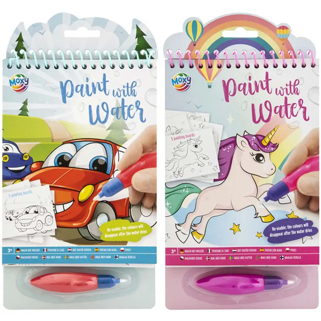 „Maluj vodou” kreativní spirálový sešit s 5 listy nabízí fantastický herní zážitek již od 3 let! Tato speciální sada probouzí barvy k životu kouzelným způsobem – stačí jen trochu vody, žádná barva, štětec nebo nepořádek! Děti mohou pomocí přiloženého vodního pera přetáhnout přes barevné listy, které se kouzelně zbarví, jakmile se jich dotkne voda. Nejlepší na tom je, že jakmile voda uschne, obraz zmizí, takže zábava může začít znovu – znovu a znovu!