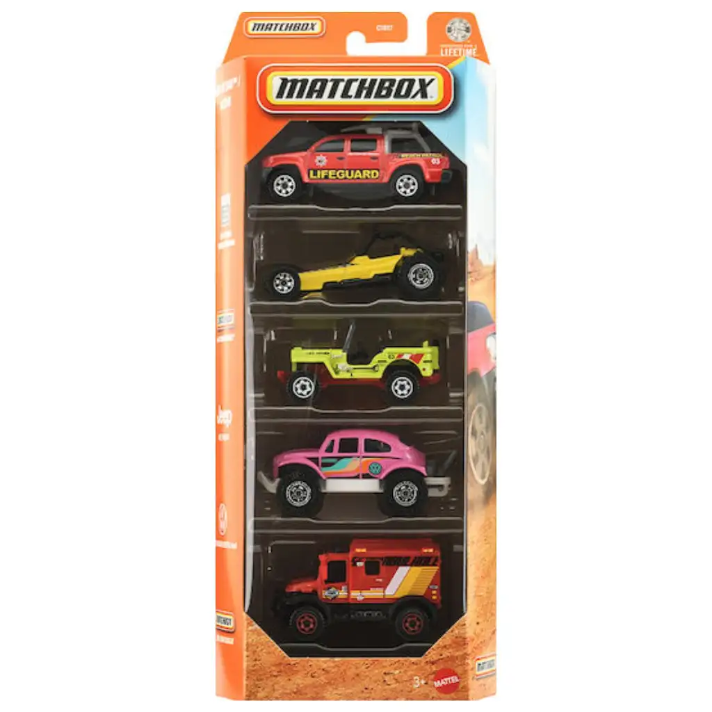 Sada 5 autíček Matchbox Ocean evokuje atmosféru pobřežních dobrodružství a záchranných zásahů v měřítku 1:64. Výběr obsahuje vozidla související se světem pláží, přístavů a vodních záchran, takže s nimi lze hrát napínavé příběhy a záchranné mise. Detailní zpracování, výrazné barvy a realistické nápisy ještě více umocňují herní zážitek. Díky odolné kovové karoserii autíčka dobře snášejí intenzivní používání. Kompaktní velikost je kompatibilní s ostatními dráhami a sadami Matchbox v měřítku 1:64, takže sbírku lze snadno rozšířit. Ideální volba pro malé milovníky autíček a dobrodružství od 3 let.