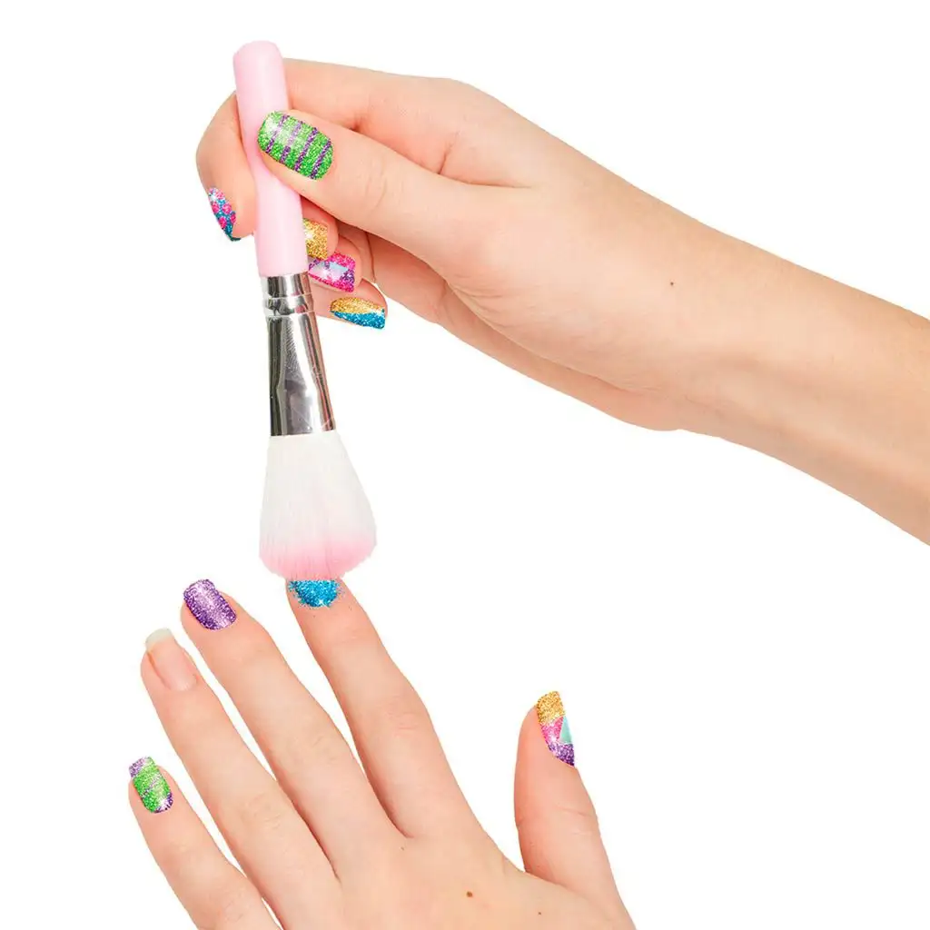 Objevte záři ve vašich nehtech s sadou na manikúru Make It Real! Tato sada obsahuje vše, co potřebujete k vytvoření dokonalých, třpytivých nehtů. Hlavním prvkem balení je Sparkle Spinner, speciální nástroj, který umožňuje rovnoměrně a přesně aplikovat třpytivé barvy na vaše nehty. Můžete si vybrat z pěti třpytivých barev, mezi kterými si každý najde tu pravou odstín. Sparkle Primer pomáhá udržet třpytivé barvy trvanlivé a lesklé, zatímco průhledný lak na nehty slouží jako dokonalé zakončení vašeho uměleckého díla. Sada obsahuje štětec pro přesnou a rovnoměrnou aplikaci, stejně jako šablonovou desku pro vytváření kreativních a jedinečných vzorů. Přiložený návod k použití vás krok za krokem provede celým procesem, takže je jednoduchý a snadno sledovatelný i pro začátečníky. S manikúrovou sadou Make It Real rychle a snadno vytvoříte ohromující, třpytivé nehty, které vyniknou a zazáří v každém okamžiku. Objevte umění nehtů a zářte s řadou Make It Real!