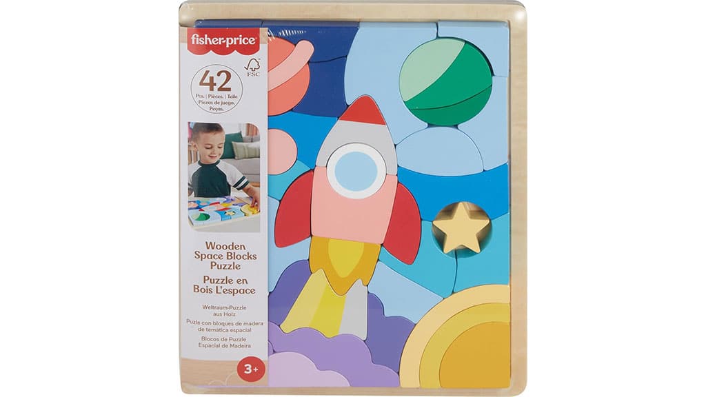 Intergalaktická zábava se vydává na nové herní dobrodružství s Fisher-Price Dřevěnými vesmírnými bloky Puzzle. Malí astronauti mohou vytvořit barevnou raketovou scénu, když umístí 42 dřevěných dílků na přiložený podnos. Děti od 3 let si mohou posílit důležité vývojové dovednosti s puzzle, které je navrženo pro klasické skládání a otevřenou hru.Tato hra není jen zábavná, ale také rozvíjí kreativitu a schopnost řešit problémy u dětí. Barevné prvky pomáhají při rozpoznávání barev a rozvoji jemné motoriky, zatímco si děti hru užívají. Fisher-Price Dřevěné Vesmírné Bloky Puzzle je ideální volbou pro každého malého objevitele, který se chce ponořit do tajemství vesmíru a zároveň se učit.