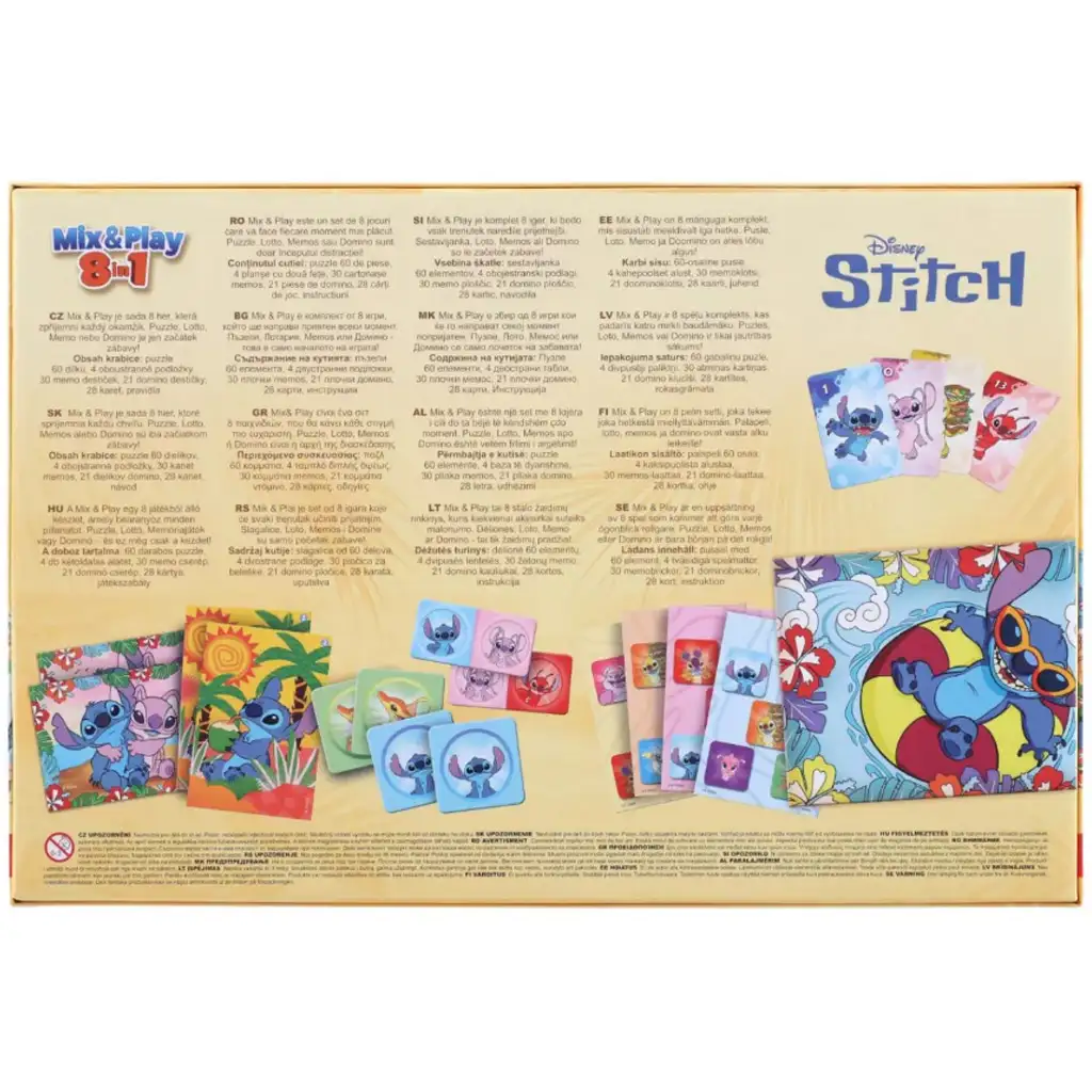 Objevte kouzelný svět hry a učení se s herní sadou Stitch Mix & Play – 8 v 1, která byla vytvořena speciálně pro nejmenší fanoušky Disney! Tato veselá, barevná sada ukrývá hned osm různých typů her, a to vše s roztomilými ilustracemi oblíbeného Stitche a jeho přátel. Sada je ideální volbou pro předškolní děti, protože během hraní rozvíjí jejich paměť, pozornost, logické myšlení i sociální dovednosti.